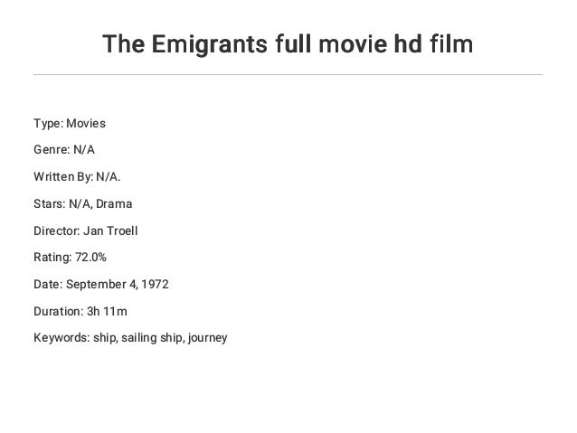 Language & literature, visual arts. pdf the arrival of the first scottish catholic emigrants in prince edward island, and after. The emigrants and the new land, the incredible pair of films made by swedish director jan troell in the early 1970s Watch the emigrants full movie. They sell everything and embark for the u.s.